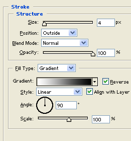 2.创建一个新图层,画一个黑色的圆形(宽高均为82)。将圆形切掉一半,并添加如下图层样式。
