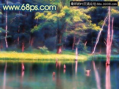 本教程介绍给单一色调的风景照片润色。思路:调色的使用尽量用曲线等工具幅度调大 一点,这样就容易产生几种以上的色彩,然后不断的加强和修饰。这样照片就用一定的色彩层次和明暗度。