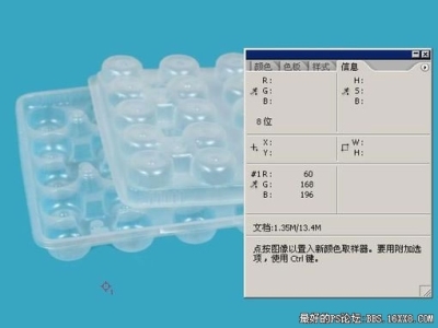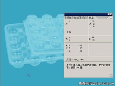 2.我们在背景上,做一个颜色取样点,看下背景色的灰度值,这里显示的是"144"。通过加载“通道混合器”来调节灰度值为“128”。